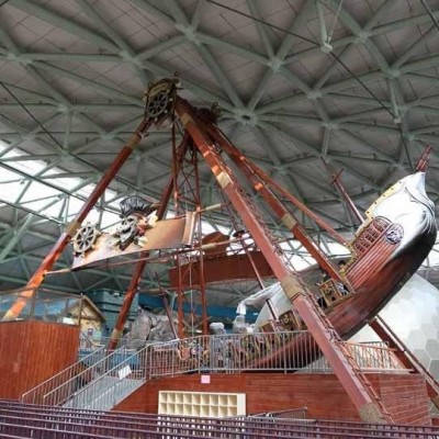 pirates of the caribbean boat ride, one kind of large amusement equipment which reciprocate and swings around the horizontal axis, attracts the attention of tourists with its realistic modeling, classical decoration and colorful lights. This equipment adopts the friction driving mode and gradually increases the swing angle to maximum. Passengers feel like being above the ocean. They seem to be taken up to the top of the waves when the boat rises, and then dropped into the abyss when the boat falls. The process of this pirate ship swing brings tourists the feel of thrill and excitement along with the pleasure.
