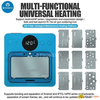 Sunshine Universal Intelligent Maintenance Heating Platform for Android & iPhone 7 to 14 Pro Max Motherboard BGA Repair Tool. SS-T12B Multi-functional universal intelligent maintenance heating Platform support Android+iPhone series Motherboard Heating groove for iPhone X-13 Pro Max Android Phone motherboard CPU Face ID repair.