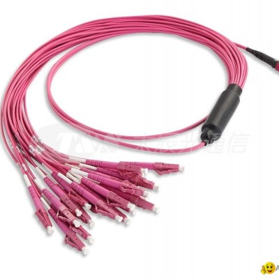 MTP/MPO harness cables are a kind of breakout/fanout MPO cable assembly with one MTP/MPO connector on one end and multiple single-fiber connectors (LC, SC, FC, etc.) on the other end, designed for data distribution and routing to patch panels. It is used to transition from trunk backbone assemblies to fiber rack system. The harness cables are fully configurable, available with a variety of cable and connector combinations. For the hardware and equipment in the same cabinet, the longer patch cords can provide flexibility at any location, and the branch cables can be winded into the vertical cable organizer.