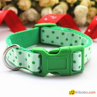 A beautifully crafted dog collar with a cute ribbon sewn onto durable nylon.
